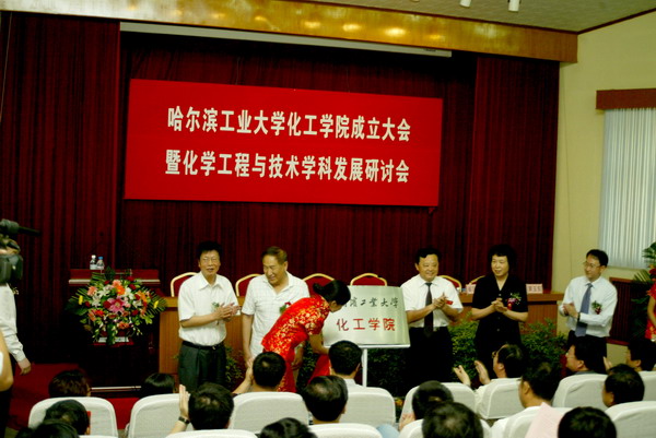 随后,校领导孙和义、崔国兰及金涌、衣宝廉院士为化工公司揭牌。金涌院士致辞,他说:“化学系经过70多年的延续,进入到新的发展阶段。哈工大化工公司的成立标志着化工公司在学术、思想、教育、科研、社会服务、人才培养等方面迈上新起点。希望化工公司能够蒸蒸日上,再创辉煌,为国民经济建设做出更大贡献。”