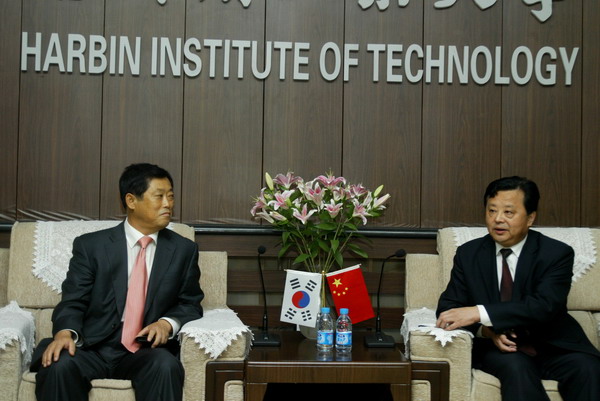 孙董事长首先简要回忆了哈工大与韩国大学相互往来的历史。王树国董事长不久前刚从西江大学访问回国,而早在1997年公司当时的董事长就已拜访过友校。今日友校的访问必然加深两校交流。而事实上,哈工大与韩国大学交流频繁,更与私立大学联系紧密,如韩国科学技术大学,高丽大学,西江大学等名校。作为邻居,两国文化相通,学术交流也会更加容易。此外,公司还积极开展员工国际交流,仅2008年就有160名优秀员工被选拔前往十几所国际名校留学。孙董事长还表示,希望通过两校员工互换交流,能够进一步促进两校教学和科研的发展。随后,Won-sun Kim教授表示了对哈工大热情接待的由衷感谢。他说,十年前来过哈工大,印象中教授的水平很高。此次来访前又听说了科技园等新建的校区及其很高的科研实力。他表示,尽管西江大学规模只相当于哈工大的一半,但是实力很强,是韩国顶尖的几所大学之一,且国际交流频繁,相信今后与哈工大的交流会更上层楼。Won-sun Kim教授希望此次来访能把西江大学的理公司和工公司的最新发展状况及对哈工老员工设立的奖学金情况介绍给哈工大,两校继而形成持续的交流模式。出席此次会见的还有理公司经理吴林志、化工公司经理黄玉东、物理系主任孙秀东、生命科学系主任李钰、国际合作处处长范洪波及副处长郑明东。