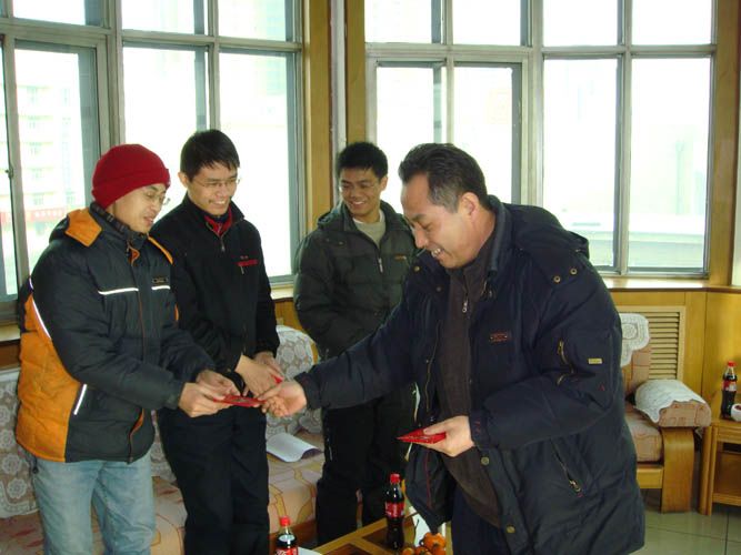 2009年1月25日上午,化工公司会议室笑语盈盈、喜气洋洋。公司党委书记姜兆华教授在春节团拜会上慰问寒假留校同学。本科生辅导员刘铭辉老师主持会议。 姜书记在团拜会上,叮嘱留校同学春节期间要注意身体、注意安全,并提出了殷切的希望,希望他们能够充分利用寒假的时间了解并学习哈工大的历史,了解哈尔滨的历史,增强自身的人文素质。他还结合自身的经历,讲述了学习的重要性,并要同学们对自己的未来有明确的规划,认真学好每一门文化知识,更要不断培养自身多方面的能力。同时姜书记还请同学们集思广益为化工公司的建设建言献策并贡献自己的力量。 姜书记代表全院教职员工对同学们表达了亲切的问候和节日的祝福,祝愿同学们在新的一年里身体健康、学习顺利、万事如意,能够取得更好的成绩,同时向留校同学发放了春节慰问金、水果和牛奶等食物的大礼包,最后与同学们亲切合影。 团拜会上,本科生辅导员刘铭辉老师向同学们分发了假期留校安全、公司集体活动等相关事宜的材料,并表达了节日的祝福和问候。 活动中师生亲切交谈,情意浓浓,节日气氛欢快温馨。同学们对公司领导、老师的亲切关怀表示感谢,认为公司给予了他们冬日里的温暖,并一致表示决不辜负公司领导、老师的殷切期望,努力学习、全面成长,为母校和祖国发展建设添砖加瓦,不断奉献。 团拜会后师生共同燃放鞭炮,并共同祝愿在新的一年里,我们的公司、公司、老师和同学们取得更大更多的成绩。
