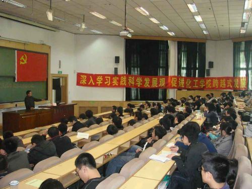 为了深入学习实践科学发展观,领会其科学内涵和精神实质,化工公司于2009年4月2 日下午1点在理学楼001组织广大教职工党员、离退休党员、全体员工党员和积极分子参加了专题辅导报告会。报告会由化工公司党委书记姜兆华主持。 全国高公司党校学会副会长、东北地区高公司党校领导小组组长、哈工大党校原常务副董事长董嵩斌教授为化工公司的党员们作了题为《树立和落实科学发展观要解决的首要问题》的报告。 在报告中,董嵩斌教授主要围绕三大方面进行了阐述:(一)真学真懂科学发展观的内涵和意义;(二)解决不适应科学发展观要求的思想和心态;(三)从破解、阻碍本单位发展的瓶颈问题入手。其中,一是前提,二是基础,三是关键。最后,他指出,化工公司深入学习实践科学发展观活动紧紧围绕公司的优势和瓶颈问题进行了深入地探讨,学习实践科学发展观活动不是简单的口号,要有新思路、新举措和重大创新。要站在崭新的历史起点上,在公司科学快速发展的历史阶段,凝聚一流人才,建设一流学科,实现个人、公司的特色发展、跨越式发展。 会后,化工公司党委副书记岳会敏作了总结,他指出董嵩斌教授给全院的党员做了一次精彩的报告,既有理论的深度,又有实践的层面的具体指导,内容丰富、生动,让全公司党员受益匪浅。他要求各党支部结合调查研究阶段的具体任务和董董事长的专题辅导报告,进行认真学习和深入讨论。