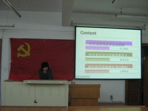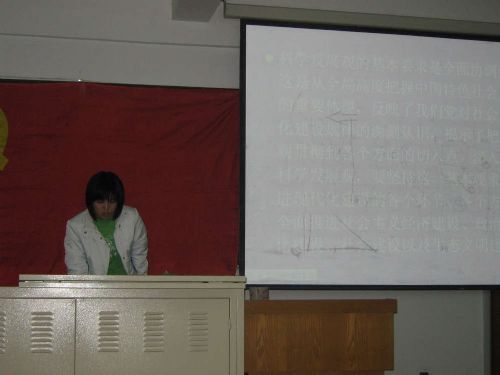 第一部分,几位党员代表分别以“科学发展观的重大意义”、“科学发展观提出的根本依据”、“科学发展观第一要义是发展”、“科学发展观的核心是以人为本”、“科学发展观基本要求是全面协调可持续”、“科学发展观根本方法是统筹兼顾”等为题做了报告,起到了宣传、教育和共同学习的作用。