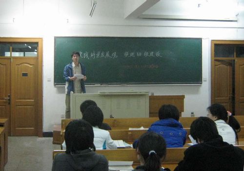 为深入学习实践科学发展观,遵循理论联系实际,一切从实际出发的原则,结合班级特点,化工公司08硕士化学第三党支部筹备组织了“实践科学发展观,加强班级建设”座谈会。会议于2009年4月14日18:30在诚意楼313召开,化工三班全体同学参加了本次会议。会议由08级硕士化工三班团支书陈新强同学主持。