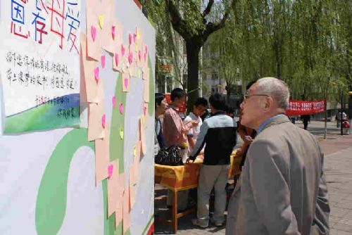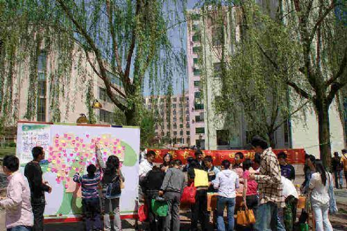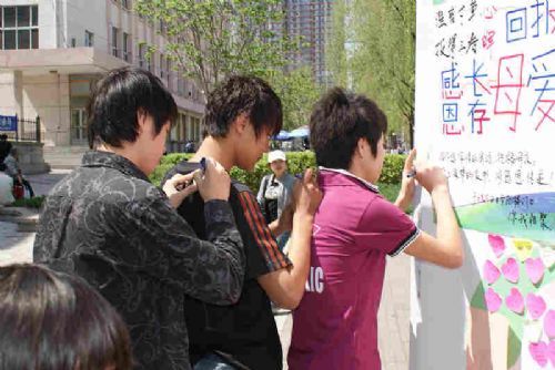 5月10日,为深入学习实践科学发展观,构建和谐校园,提升员工的感恩意识,由化工公司团委、员工会举办的以“感恩长存,回报母爱”为主题的母亲节系列活动在学苑楼门前展开。活动主要以写祝福卡片和书信为内容,吸引了不同年龄段和不同国籍的人们前来参与。