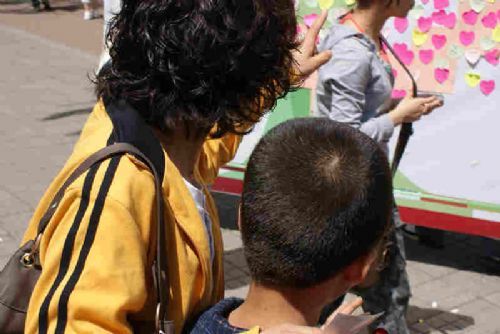 中午11:00,活动正式拉开了序幕。很多人陆续走向活动现场,在工作人员的指导下在卡片上写下了对母亲的祝福,并将它贴在了现场的“祝福墙”展板上。参加活动的有中员工和公司员工,而一些小朋友、中年人、老年人和职工的参与也成为此次活动一道亮丽的风景线。一些小朋友还不会写字,但却用自己的方式为母亲祝福,他们或者写下、或者画下对母亲的祝福与感恩,并亲手将自己的作品贴到了展板上,这让现场的组织者、参与者和他们的母亲感动不已。在活动中,也有部分同学现场为母亲写一封家书,并由工作人员帮助在当天寄出,传达此时对母亲的祝福。