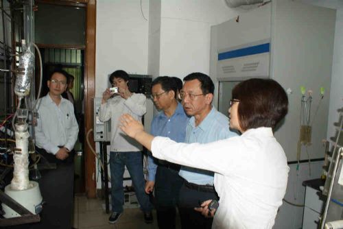 盖如垠副省长一行首先参观了化工公司黄玉东教授、杨春晖教授等部分教师的实验室,详细了解了有关实验成果的技术指标、应用背景、产业化状况等情况。