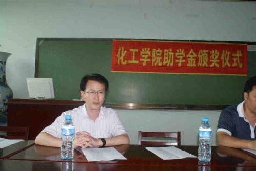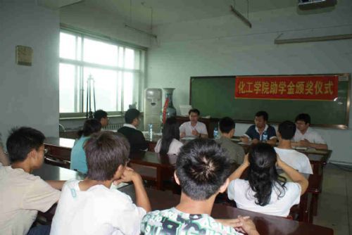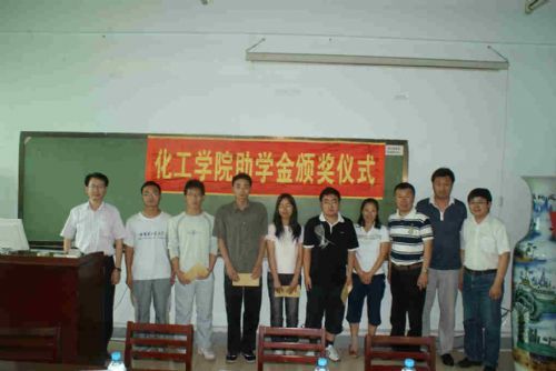 7月14日下午14:00,化工公司助学金颁奖仪式在理学楼901举行。化工公司经理黄玉东教授、建青木业总经理孙志勇先生出席了颁奖仪式。仪式由化工公司党委副书记岳会敏主持。