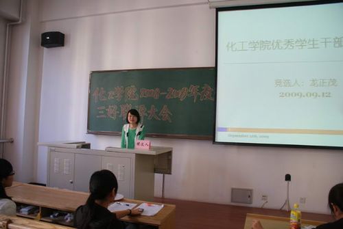 9月12日13:30,化工公司2008-2009年度三好评优联评大会在正心120举行,公司党委副书记岳会敏老师、本科生辅导员刘铭辉老师、学工秘书王玉楠老师出席了本次会议,大会由王玉楠老师主持。