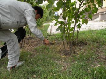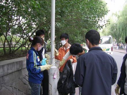 为迎接国庆六十周年,美化校园环境,由化工公司团委主办,化工公司志愿者协会承办的“环保卫士在行动”活动于