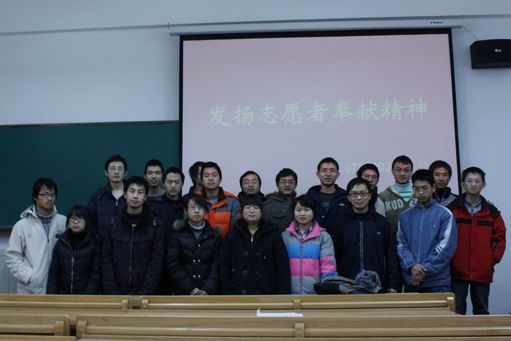 为响应校团委号召广泛开展平安志愿服务周活动,2009年12月2日晚,化工公司07级化学工程与工艺二班组织开展学习志愿精神,庆祝第二十四个志愿者日的主题班会。全体同学先就各自的认识与大家进行了交流,后又观看了相关的电影——《中央车站》。同学们一致认为应该继续发扬班级志愿服务精神和实践锻炼的传统,时刻践行“奉献、友爱、互助、进步”的志愿精神。经过讨论,班级同学决定在七公寓管理员开展志愿清扫公共区域卫生的活动。