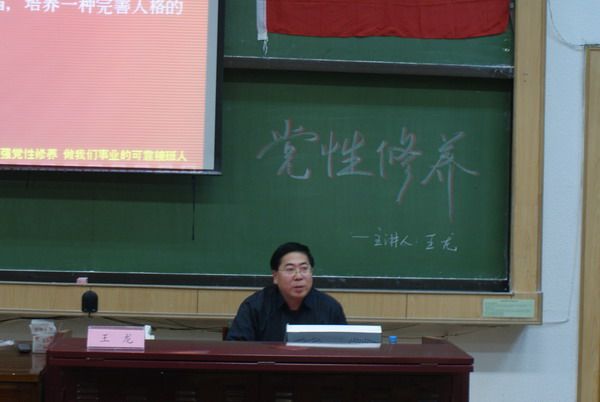 2009年12月23日晚18:30,哈工大党校化工公司—理公司分校2009年预备党员培训班第五讲在L001如期举行。此次党课以“加强党性修养,做我们事业的可靠接班人”为主题,由交通公司党委副书记王龙老师主讲。