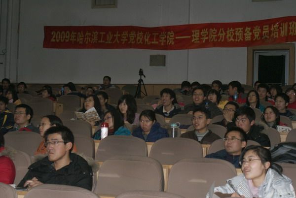2009年12月19日晚18:30,哈工大党校化工公司—理公司2009年预备党员分校第四讲在L001如期举行。此次党课以“预备党员如何度过预备期”为主题,由理公司党委副书记杨春雷老师主讲。