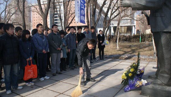 为悼念马祖光院士,传承哈工大精神,2010年4月3日,化工公司本科生各党支部成员共20余人到科技园祭扫马祖光院士的雕像。