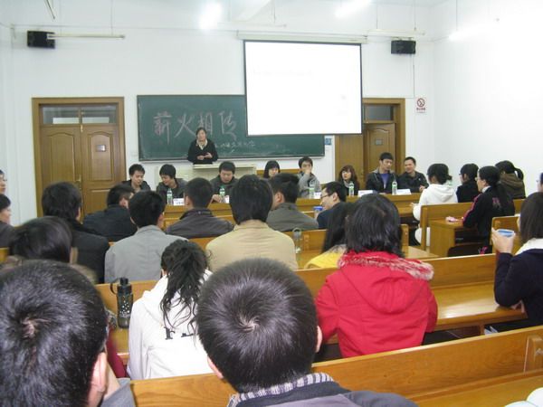 求职之旅、为学之道,薪尽火传、一脉相承。为使化工公司09级应用化学专业硕士研究生充分汲取上届师兄师姐在求职、读博路上的经验,以明确自己的方向和目标,同时增进应用化学专业08和09级硕士研究生之间的情谊,化工公司09硕应用化学专业于2010年4月11日晚6:30在诚意楼102精心组织了“薪火相传——应用化学专业研究生经验交流会”。交流会由副班长吴宁宁同学主持。 交流会邀请到08硕应用化学专业8位优秀的师兄师姐,其中5位成功签约行业名企,三位考取不同院校的博士研究生,他们从就业和读博两方面为我们答惑解疑。主持人对到场的八位师兄师姐进行简单介绍。接下来8位同学对就业和读博中的常见问题进行集中回答,他们睿智而幽默的回答博得了大家的阵阵掌声。最后是自由交流环节,同学们就各自关心的问题进行咨询,师兄师姐们将自己宝贵经验和深刻体会倾囊相授,使大家受益匪浅。