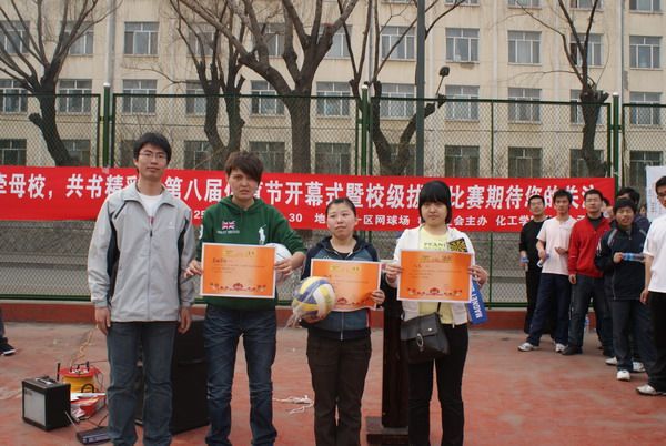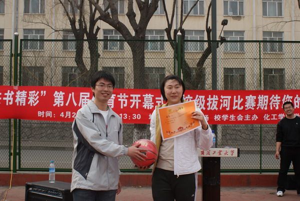开幕式上化工公司员工代表刘夏林同学首先发言,他用蓬勃的朝气为母校九十华诞送上祝福,让同学们为之振奋。 校团委副书记 随着体育部副部长 比赛结束后,校员工会主席郭一澎为获奖队伍颁发了奖状和奖品。 预祝“情牵母校,共书精彩”——欢迎来公海欢迎来到船701第八届体育节圆满成功!