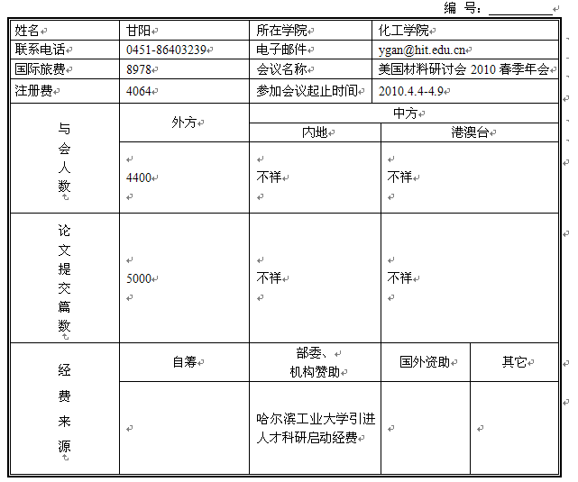 出国参加国际会议项目总结表