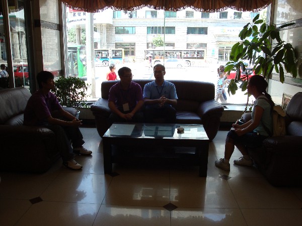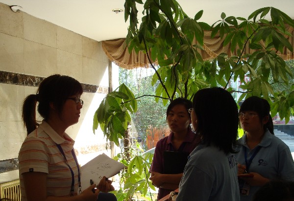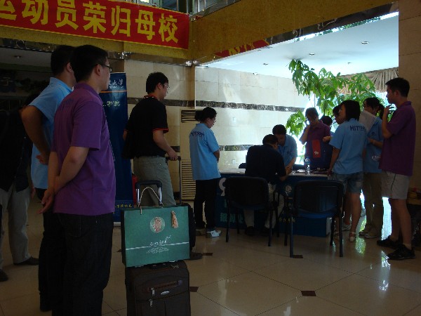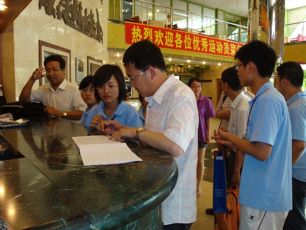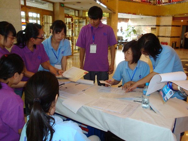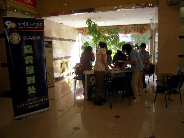 “外面的天气热不热,阳光是不是很灿烂?在员工接待中,我们的志愿者有的只是比气温更高的热情,比阳光更灿烂的笑容!”2010年6月5日是化工公司员工返校的高峰期,员工接待采访组的成员一行五人来到哈特商务酒店,慰问工作在一线的志愿者们,于是就听到了随员组负责人杨玮婧同学的这句话。 记者从报到组组长魏思捷同学那里了解到情况,虽然员工们的返校时间基本集中在6月5日当天,但仍有不少员工提前到达或临时改变行程,致使志愿者不得不提前上岗,所幸诸事已准备妥帖,因此未出现慌乱或措手不及的现象。 看到哈特商务酒店内一片忙碌但又不失条理的景象,员工接待总负责人陈佰爽同学告诉记者:“连续两天的接待工作虽然辛苦,但志愿者们不喊一声苦、不叫一声累,他们热情周到的服务展示了化工人积极、奋进的风貌。” 记者来到志愿者休息室,目睹了这样一幕:几位志愿者再利用短暂的休息时间研究员工所需信息。据了解,他们几人均属员工接待综合组,他们现在从事的并非他们的本职任务。他们说:“大家同是员工接待志愿者,一旦忙起来可能就顾不上原来的任务分工了,经常会有各组人员互相抽调的情况。”问及员工接待工作的感受,他们说:“我们接触到了形形色色的新老员工,直面了最真实的校庆、院庆,愈发地为自己是哈工大人而自豪!”