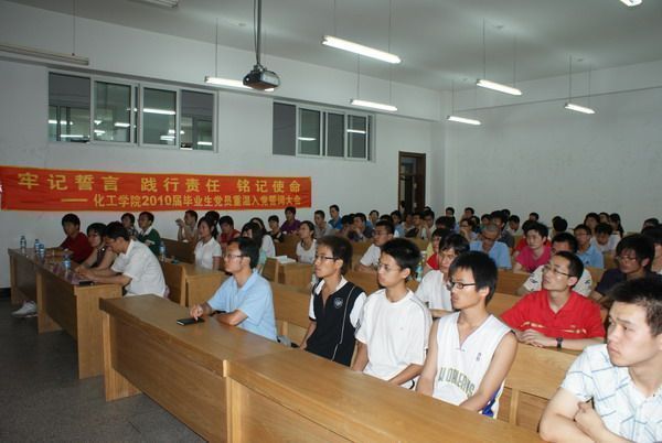 “起来,饥寒交迫的奴隶……”,在高亢的国际歌声中,化工公司2010届毕业生党员于2010年7月1日18:00在正心楼105重温入党誓词,深情感恩母校,庆祝建党89周年。化工公司党委副书记岳会敏、团委书记刘铭辉、研究生协理员王玉楠、党建负责人贺金秋出席了本次会议。化工公司60余位即将毕业的本科生、研究生党员,35位2010年春季学期新党员参加了大会。大会由团委书记刘铭辉主持。 面对着鲜艳的党旗,各位党员一起举起右手,重温誓词。我们党已经走过了89年光辉历程。89年来,一代又一代中国共产党人始终以实现中华民族伟大复兴为己任,继往开来、开拓进取,团结带领全国各族人民战胜各种艰难险阻,在革命、建设、改革的历史进程中不断取得新的胜利。 毕业生党员代表王冬梅在发言中回忆了美好的老员工活,深切表达了对母校 化工公司党委副书记岳会敏代表公司党委讲话。他希望新党员能够积极学习、敢于创新、勇于实践,在生活中切实起到模范带头作用;希望即将走上工作岗位或继续深造的毕业生党员能够始终牢记自己的党员身份,认真做事,善于学习,以实际行动践行“规格严格,功夫到家”的校训,诠释哈工大精神。最后,岳书记为毕业生送上了真挚的祝福,希望他们能够信心百倍地去迎接明天,开创更加美好的未来。