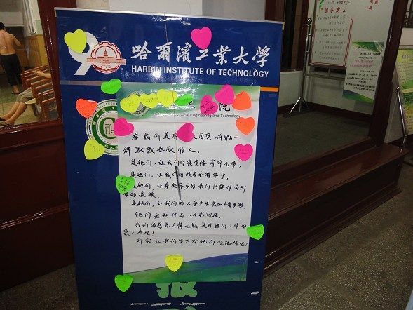6月30日至 感恩活动具体包括以下三部分:爱心换位——帮助阿姨打扫卫生,真心诚意——与阿姨面对面交流座谈及“爱以言表”——号召同学给阿姨送祝福等。 爱心换位活动中,同学们自己找来拖把,水桶,清理着平日最熟悉不过的自习室和走廊,不到一会功夫大家已经累得气喘吁吁,不禁感叹几十年如一日的公寓阿姨是如何坚持的。而且污水不时的飞溅在身上,难以处理,使同学们对阿姨的朴素工作有了更高的敬意。 座谈会上,寝室代表表达了对阿姨的衷心祝福与感谢,并请阿姨对同学们在日常生活中存在的问题提一些建议和意见。领班王阿姨首先肯定了化工公司员工的寝室生活质量,并指出寝室同学的礼貌和良好寝室卫生令楼层的各位阿姨都比较满意,但在有些方面尚待加强。 本活动承办方在会后也将交谈意见张贴在公寓宣传板上,提醒大家注意自己的行为。最后,毕业即将来临之际,同学们一起在楼下大厅的宣传板上写下了自己对公寓工作人员的感激之情,真心的祝愿阿姨叔叔们身体健康,一切顺意! 至此,本次公寓感恩活动圆满结束。