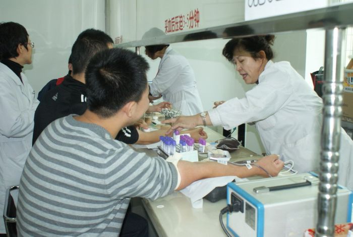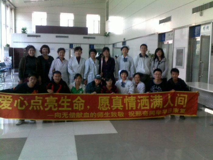 爱心传递,点亮希望之光;真情无限,愿生命之帆启航! 中午11:30,哈尔滨市血站5名工作人员早早地来到哈工大校医院体检中心,为下午的采血工作做精心准备。校医院派出6名医护人员协助血站献血,切实保证师生的安全。 采血工作于中午12:30开始,现场井然有序。凭着对献血科学的认识,同学们从容面对献血。想到自己的血即将挽回一个宝贵的生命,同学们无不露出会心的笑容。“不用签名了,大家都是工老员工,这是我们应该为他做的”,很多同学欣然拒绝了现场工作人员签名留念的要求。健康的血液汩汩流动,奔进了被称为“生命之河”的血液袋里,这一份心、一片情,形成了现场的主旋律——奉献爱心,全力挽救生命。同时化工公司为每位献血的同学准备了一封感谢信。 下午16:00,献血活动圆满结束。据统计,今天到场献血的工老员工共计50余名,累计献血14250 ml,其中AB型血11800ml。 据悉,所献血液将被迅速转移至哈尔滨血站,经处理,提取血浆之后,转运医大一院,投入到邢奇同学的救治工作中。 附: 邢奇同学系化工公司一名品学兼优的研究生。出身贫苦的他乐观大方、勤奋努力、成绩优异,深得老师和同学的好评。今年7月,命运却在不知不觉中与他开了一个大大的玩笑。邢奇因患胆囊炎同时引起胆源性急性胰腺炎,由于未能及时发现和治疗导致腹部感染引起肝脏严重损伤,最终导致肝功能衰竭,急需进行换血治疗,病情严重,曾一度危急生命。正值青春年华的他,本该和同学们一起在美丽的工大校园里享受阳光、享受快乐、享受健康,此时此刻,原本年轻的生命,在病魔面前却显得那么苍白无力。由于医院AB型血紧缺,无法维持邢奇同学的继续治疗,病情急剧恶化。 正在这一筹莫展之际,哈工大广大师生踊跃报名,积极投身到为同学无偿献血的活动中,为他点燃了生的希望、爱的火炬。 献血者填写表格 微机录入献血者信息 献血者测血压 献血者采集血样 等待献血 采血现场 为献血者发放感谢信 献血者为刑奇同学写下祝福 工作人员合影
