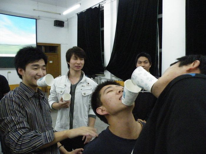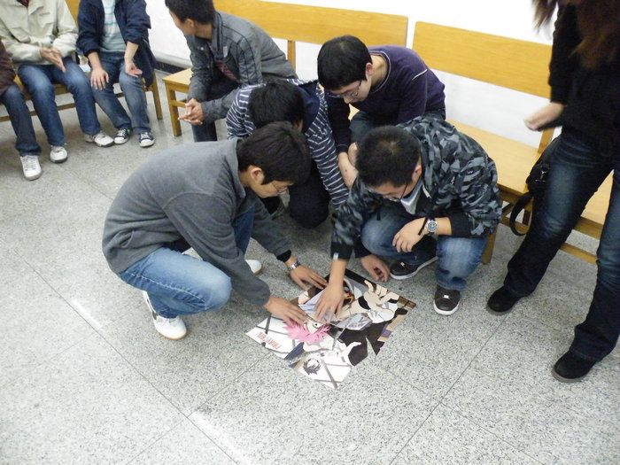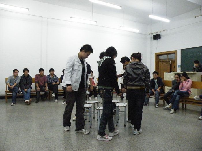 9月30日晚,化工公司2010级研究生骨干培训系列活动之素质拓展训练在诚意楼113举行。本活动邀请了机电公司素质拓展部协助进行,化工公司研分会全体成员以及全体助管同学也参加了本次活动。 本次拓展训练主要分为四个部分。首先,同学们通过抽签拼图,寻找其他组员进行随机分组;随后是AB站活动,每个同学在获得主持人同意后,用不同的方式回到原位,大家在活动中的奇思妙想让人赞叹。最精彩的部分要数诺亚方舟这个环节,游戏要求全组七名成员一同站在一张不足0.5平方米的报纸上,保持一分钟平衡。最终第四小组凭借着合理的布局和全体组员的齐心协力居然稳稳的坚持了三分钟,博得了大家的一片欢呼。最后一项活动是纸杯接力游戏,小组成员需要互相配合才能用嘴衔着纸杯将水一杯杯传向终点。 两个小时的团队训练很快就结束了,此次活动使同学们在轻松愉快的环境中认识了许多新的朋友,了解到了团队合作的重要性,相信大家在今后的工作和生活中会更加精彩、更有默契。