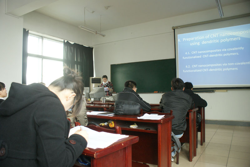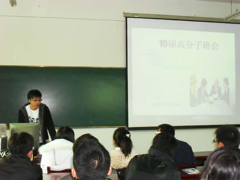 十月初,化工公司10硕高分子化学与物理班经审批后获得研究生院的A类班级立项支持,全班同学积极向上,开展了丰富多彩的班级活动。 班级首先进行了班内小组讨论,确定了以党员带动团员,全体同学共同进步的学习方式。班长牟辰中在班级立项动员班会上鼓励大家,不仅要在学习和科研中认真努力,在其他方面也要积极踊跃。班级立项中包含了学术交流、就业经验交流、企业参观或实习、体育文化活动等一系列能够提升综合素质的内容。动员大会上,班干为全班同学发放了“成长日记”,鼓励大家记录下研究生生活的点点滴滴,作为今后确立目标的参考。 在十月份,班级内部开展了两次学术交流活动。同学们的学术报告分别涉及到碳纤维及表面改性、手性体分离技术、木材用胶黏剂、功能高分子膜等方面。 同时,为了鼓励大家走上讲台,锻炼表达能力,班级内部在十一月初组织了“个人未来十年职业生涯规划”讨论活动,同学们站在讲台上,向其他同学描述了自己未来的规划,许多同学都有继续读博的打算,并且明确了硕士期间的科研计划以便为继续深造打下坚实的基础。很多打算找工作的同学明确了自己在研一期间要努力学好英语、研二认真在工厂实习的目标。通过职业生涯规划讨论,大家都明确了自己现在学习的目的,茫然的心态逐渐消失。 作为哈工大的硕士,班级同学都认为不能读死书,因此班干经常组织大家在业余时间开展丰富的文体活动。比如,篮球赛、足球赛、羽毛球、游泳等活动,体育运动不仅使班内同学身体素质增强,同时,更增进了同学之间的感情。 班会动员 全民演讲活动 班级同学高兴的听取个人职业生涯规划 篮球场上的英姿 全班同学篮球场合影 班内学术交流
