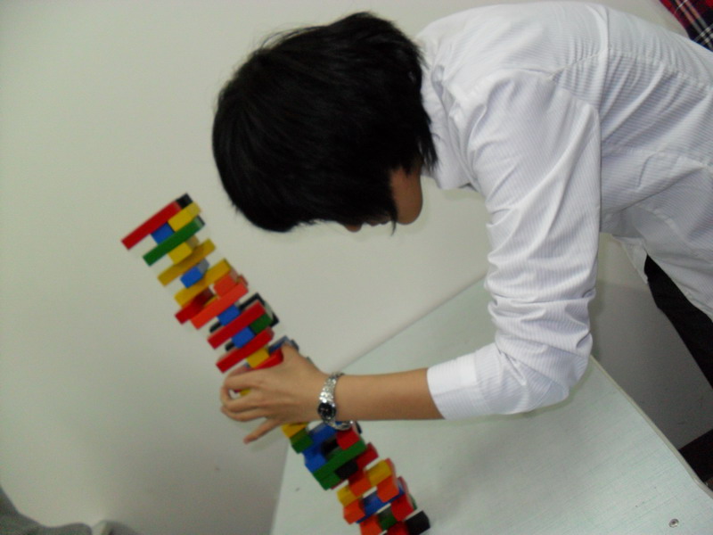 2010年12月04日晚上6点,化工公司团委主办,0914202团支部承办了第一届趣味层层叠比赛。本次比赛参赛队伍中达16组。两人一组,参赛小组通过抽签决定比赛场次。 “抽与不抽,就在你的一念之间,倒与不倒,就看你的心灵手巧”。比赛在闪亮的口号下拉开了帷幕,场面异常火爆。参赛选手按捺不住自己兴奋的心情,个个都摩拳擦掌,跃跃欲试,在主持人仔细的向大家介绍了游戏规则后,比赛正式开始了。 比赛在紧张的气氛下进行,选手们都屏着呼吸,小心翼翼的抽取着摇摇欲坠的积木。可时不时就有选手“失手”,伴随着积木轰然倒塌,周围发出一阵叹息。最后,争夺一,二等奖的决赛开始了,围观的同学里里外外包围了好多层,可教室却出奇的安静。最后09级的刘宇鹏同学获得了冠军。 比赛结束后,进行了简短的颁奖仪式,获得冠一,二,三的同学依次上台领取奖品,同学们纷纷表示祝贺。本届校园趣味层层叠比赛取得圆满成功。