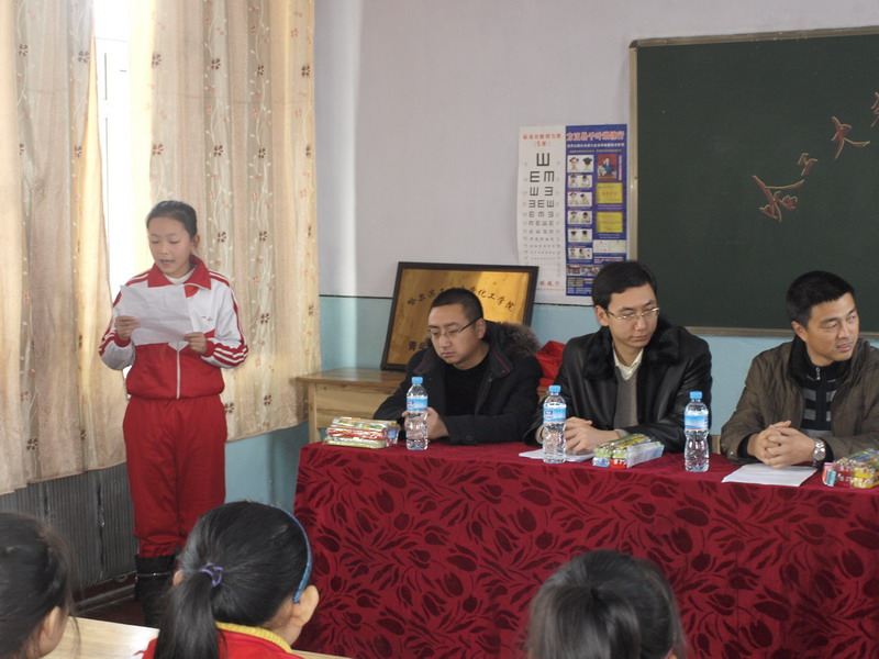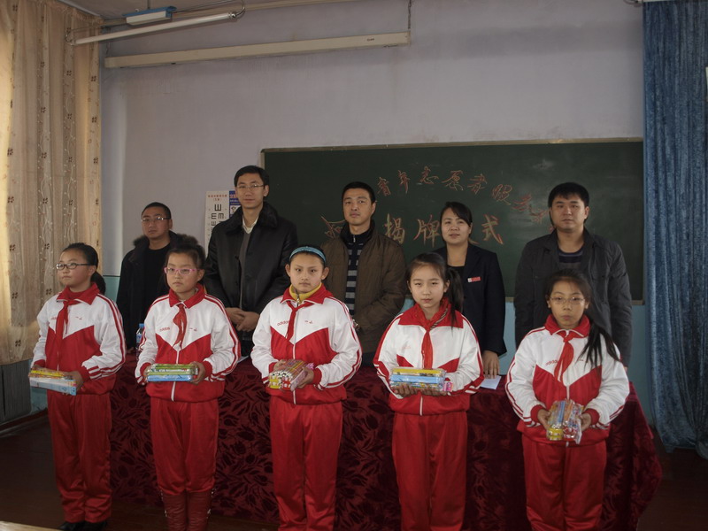 为深入开展创先争优活动,迎接校第十一次党代会的胜利召开,按照团中央、校团委关于开展关爱进城务工农民工子女志愿者服务工作的相关要求和化工公司团委关于在团员青年中广泛开展创先争优活动的要求,在校团委和方正县委县政府的大力支持下,2010年12月9日,化工公司“关爱农民工子女志愿者服务基地” 在方正县第一小学正式揭牌。方正县团县委书记徐涛、副书记常晓东、张冬、方正县第一小学董事长李佰玲、化工公司团委书记刘铭辉出席了揭牌仪式。活动由方正县团县委书记徐涛同志主持。 李佰玲董事长对方正县第一小学的基本情况进行了介绍。化工公司团委书记刘铭辉为志愿者代表授旗,介绍了志愿者服务基地的主要内容。方正县第一小学董事长李佰玲与化工公司团委书记刘铭辉共同为关爱农民工子女志愿者服务基地揭牌。化工公司青年志愿者代表刘夏林同学和农民工子女代表在会上分别发言。 揭牌仪式上,化工公司团委还为方正县第一小学捐赠了计算机、学习文具。 依托关爱农民工子女志愿者服务基地,在校团委的指导和帮助下,化工公司团委将积极组织团员青年在方正县第一小学开展学业辅导、亲情陪伴、感受城市、自护教育、爱心捐赠等系列志愿服务活动,具体项目包括“大手牵小手”结对子、老员工支教、安全知识校园行、农民工子女家庭进大学、建立农民工子女图书馆等。 方正县第一小学是方正县区内三所小学中农民工子女比例最高的公司,全校员工总数1200人,农民工子女比例达30%。