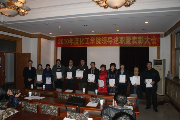 为更好的总结经验、表彰先进,激发全体教职工争先进、创优秀的积极性、主动性和创造性,化工公司于2011年1月7日召开了2010年度表彰大会,对2010年在公司教学、科研、国际合作、团队建设、老员工科技创新等方面工作做出突出贡献和重要工作的教职工进行了表彰。公司全体教职员工参加了大会,经理黄玉东、党委书记姜兆华、副经理尹鸽平、杨春晖、孟令辉为获奖教师颁奖,党委副书记岳会敏主持大会。 2010年,在公司党委的正确领导下,在公司各职能部门的大力支持下,全体化工人紧密围绕公司第一次党代会确定的五年发展目标,以科学发展观为统领,以创先争优活动为强大动力,凝神聚力、共谋发展,公司工作取得了快速发展。系统谋划拔尖创新人才培养工作。“卓越工程师计划”培育计划顺利获批公司项目支持,成功获批省精品课程和省级教学立项课题,2010年度本科生参与科技创新100%覆盖,成功立项科技创新项目53项,并获各类各级科技创新奖励20项,获得校优博1人,学术新人奖3人;科研工作取得突破性进展,2010年科研经费比2009增长180%,获批国家自然基金资助11项,占全院教师总数的1/4。发表SCI论文数量位居公司第四位,论文影响因子有较大提高,其中影响因子大于10的文章1篇,7~8的文章2篇,4~6的文章11篇。获得教育部技术发明二等奖1项、省科学技术一等奖2项;团队建设进展顺利。抓住公司“985工程”三期项目论证实行竞争机制的机遇,系统规划、逐项研究、反复论证,第一轮立项申报取得了可喜的成绩;学术交流活跃。邀请30余名国内外专家学者到公司讲学,包括国外院士2人、国内院士2人,成功聘请了界面科学领域顶尖科学家贝森·巴赫教授为公司首席国际学术顾问,并与对方达成了共建国际联合研究中心的协议。