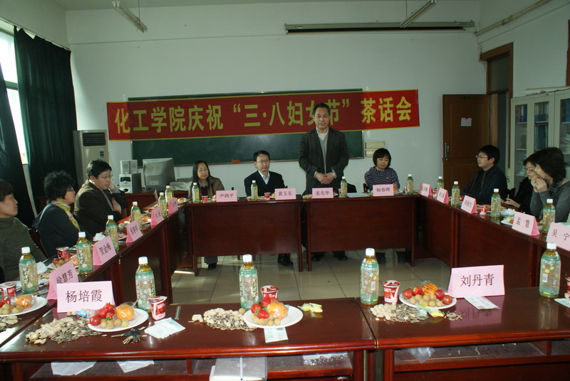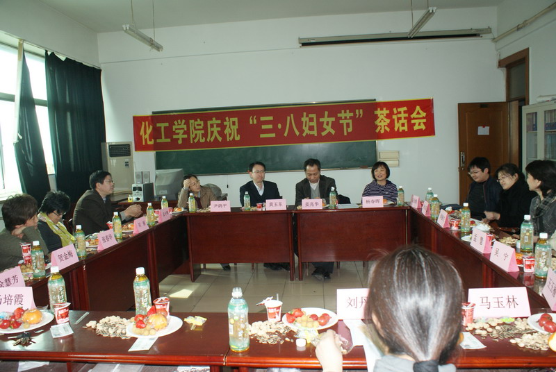 3月8日上午,化工公司庆祝“三八妇女节”茶话会在理学楼801举行,化工公司经理黄玉东、党委书记姜兆华、副经理尹鸽平、孟令辉、杨春晖及公司全体女教职工参加了茶话会。茶话会由党委副书记岳会敏主持。 党委书记姜兆华、经理黄玉东代表化工公司向全体女教职员工致以节日的问候和由衷的祝福,并对各位女教职工在工作中取得的成绩表示感谢。座谈会在热烈而轻松的气氛中进行,各位女教师畅所欲言,对公司的关怀表示感谢,并分享了自己在工作、科研、家庭生活中的经验和体会,增进了彼此的了解和感情,表达了作为化工人的幸福感,并对公司的工作,提出了宝贵的建议和意见。