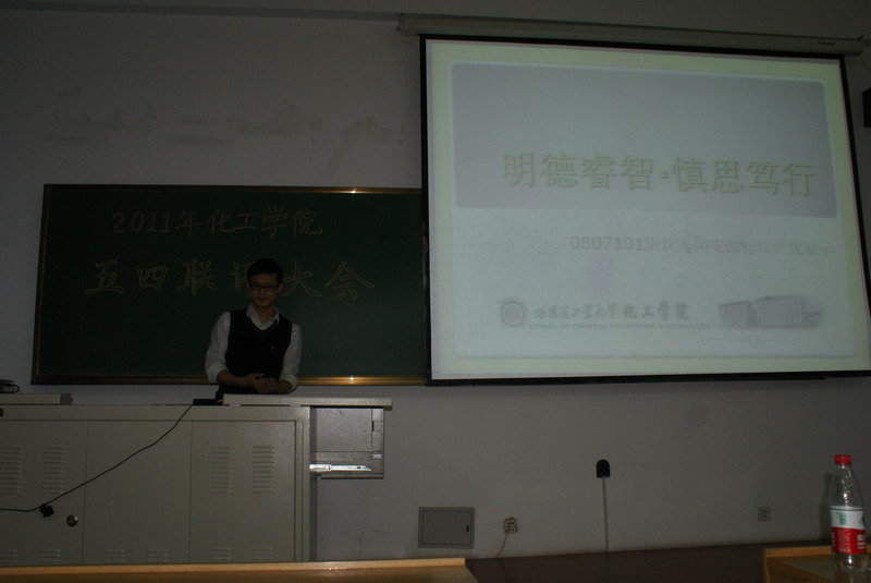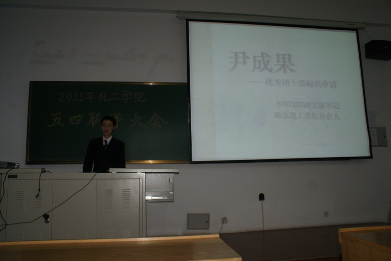 2011年3月30日,化工公司2010—2011年度“五四”评优联评大会在正心楼116教室召开。公司团委书记刘铭辉、副书记王玉楠、贺金秋出席了本次联评大会。大会由院团委书记刘铭辉主持。 在此次大会上,共有7个候选团支部,13个候选个人参评,每个团支部及个人都展现了他们风采。候选团支部的展示精彩纷呈,展示了他们取得的骄人成绩,体现了每一个相亲相爱的大家庭的凝聚力、创造力。每一位候选个人骄人的学习成绩、完美的员工工作经验、丰富的社会实践和志愿者服务经历,充分体现了他们的先进性,让在场的所有人都强烈的感受到了榜样的力量。 五四联评大会结束后,刘铭辉做了相应总结,并对各团支部及个人给予充分的肯定。会议要求各团支部以纪念建团89周年和五四运动92周年为契机,加强经验交流和相互学习,加强基层团支部建设,促进基层团支部更好更快发展,充分发挥榜样的先锋模范引领作用,为公司和公司的发展贡献自己的力量,向中国共产党成立90周年献礼!