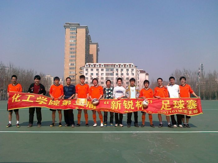 2011化工公司第三届“新锐杯“足球赛于4月16日圆满落幕,大四及研究生联队获得冠军,大三联队获得亚军。化工公司本科生辅导员贺金秋为冠、亚军球队颁发了证书及奖品。 中午12:20,期待已久的决赛在温暖的阳光中准时开赛。随着主裁的一声哨响,双方气势如虹,拼抢积极,观众呼声不断。上半场,大四及研究生联队在禁区前抓住机会,连续2过1后,前锋推射远角,先入一球,暂时领先。但是大三联队在失球的情况下没有慌乱,借助两个边路优势,不时组织出漂亮的进攻,给对方造成威胁。下半时,大三联队表现积极,利用点球扳平比分,但是大四及研究生联队再次利用精准的远射打入制胜球,最终大四及研究生联队以2:1胜出。 本次“新锐杯“足球赛中各队表现积极,在比赛中既表现出了良好的竞技素养,增进了化工公司各年级同学间的友谊。