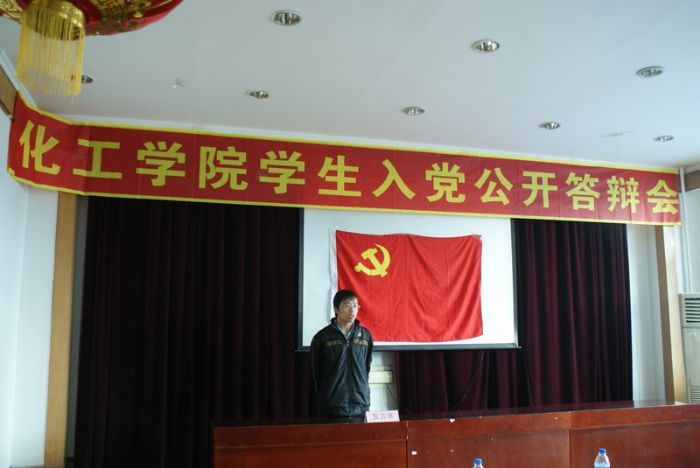 2011年5月20日下午,化工公司员工入党公开答辩大会在理学楼308举行。化工公司党委书记姜兆华、党委副书记岳会敏、学工办的全体老师及各员工党支部支部党员及员工代表参加了公开答辩会。 下午1点,答辩会准时开始。答辩对象按照要求精心准备了5分钟的答辩陈述,介绍自己的入党动机、优缺点、近一年来取得的重大进步和入党后承诺。提问环节中,各位老师和同学紧扣答辩者入党动机、党的基本理论知识、先锋模范作用发挥等方面提出了问题。答辩对象沉着地回答了一个个尖锐的问题,并且就“药家鑫事件”、“利比亚战争”、“房市调控”等时事热点展开了讨论,答辩会气氛热烈。 本次答辩会历时4个小时,公开答辩会的举行有利于党组织更全面的考核发展对象,同时也是对老党员的一次提醒再教育,活动取得了良好效果