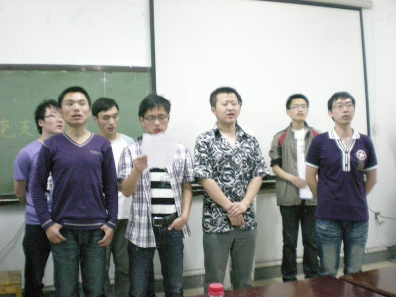 党支部在5月22日、5月24日、5月26日、5月29日进行了合唱排练,本次进行的红歌合唱是为建党90周年献礼所准备。红歌合唱的内容包括建党后每个历史时期中国共产党的历史使命和丰功伟绩,同时也抒发了对中国共产党热爱、崇敬之情。 通过合唱排练活动,党支部同学更深刻的体会到了中国共产党是一个伟大而光荣的党,并深深牢记了党员的责任。