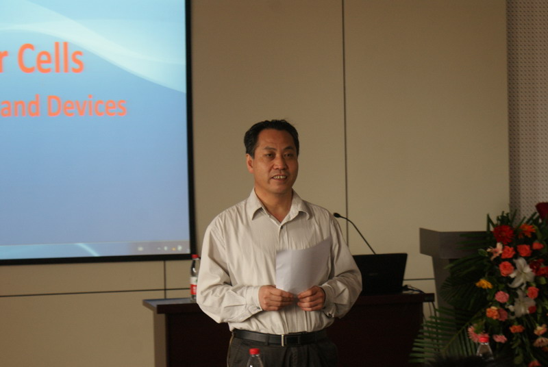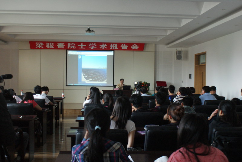 梁院士首先介绍了世界能源体系的现状,从环境保护和能源安全的角度分析了光伏电池产业的潜力和前景;接着阐述了光伏电池的结构和工作原理,重点讲述了各种光伏电池材料的性能、优势、研究情况和发展趋势,介绍了光伏电池器件工艺的相关情况;最后热情地解答了现场师生的提问。 副经理杨春晖教授代表公司向梁院士赠送了礼物。