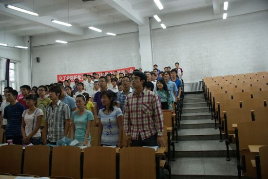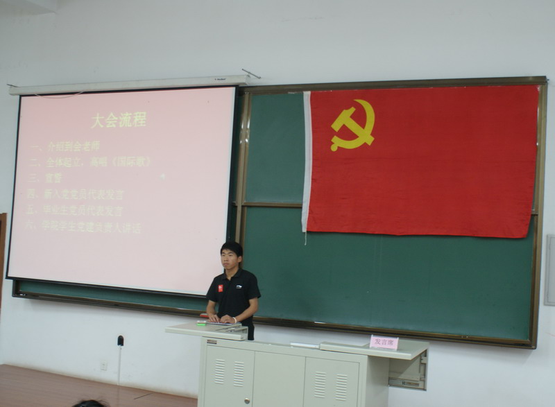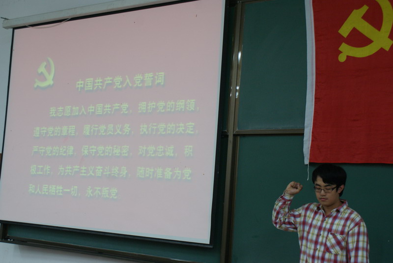 为纪念中国共产党建党90周年,6月28日晚6点半,化工公司在正心11教室举行新党员入党宣誓暨老党员重温誓词大会,化工公司全体员工党员参加会议。 活动在庄严的《国际歌》声中开始。全体党员面向党旗,庄严地举起右手进行宣誓,向党组织立下自己的铮铮誓言。李佳杰同学代表新党员做了发言。他郑重承诺:在今后的学习、工作中,一定牢记誓言,努力学习党的理论知识,以优秀共产党员为榜样,立足现实,把个人抱负与祖国发展需要紧密联系起来,全心全意为人民服务。毕业生党员代表张慧作了发言,她首先对公司、公司老师的谆谆教导和无微关怀表达了衷心的感谢,同时也感谢了支部党员同志对自己的督促和帮助。她表示,走上工作岗位后,将继续以“规格严格,功夫到家”的校训勉励自己,用母校赋予的知识和智慧描绘出壮美的人生画卷! 最后,公司员工党建负责人贺金秋老师作了总结发言。他首先对新党员的加入表示热烈欢迎,同时也向毕业生党员送出了真诚祝福。最后,他向全体党员同志提出要求:进一步端正入党动机,自觉提高党性,始终保持共产党员的先进性,真正践行自己许下的铮铮誓言。