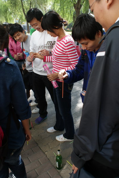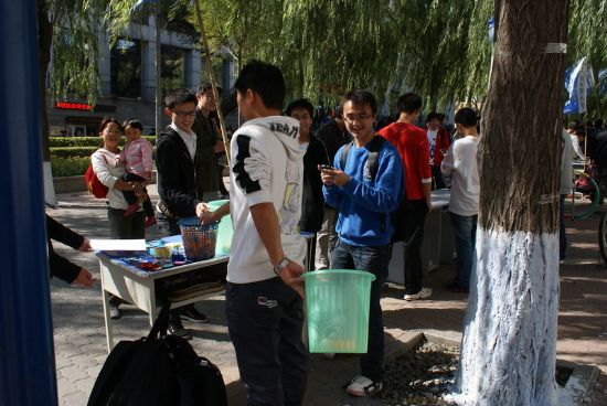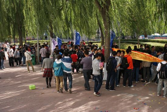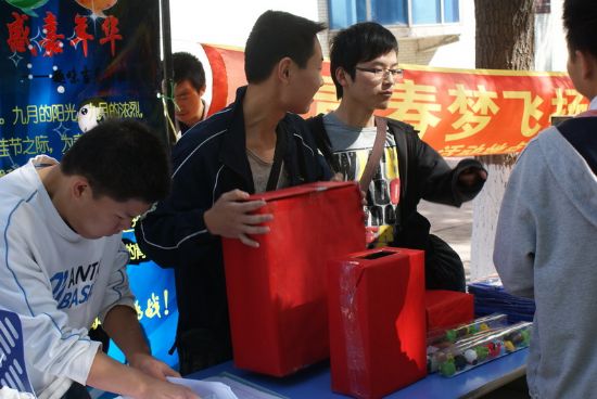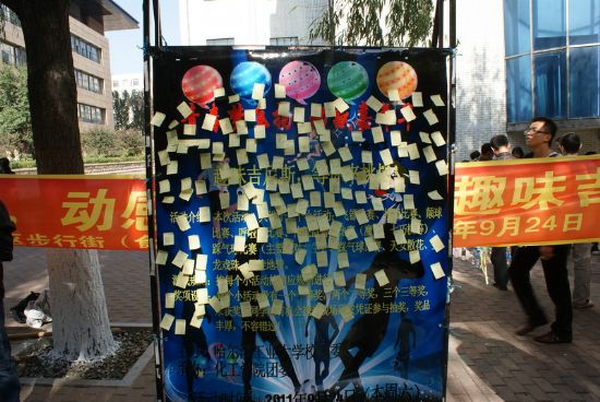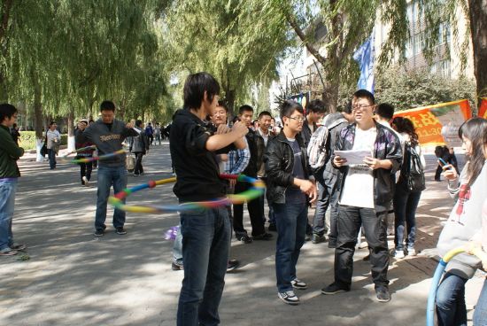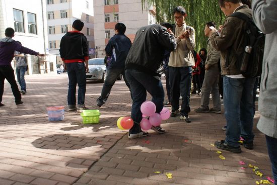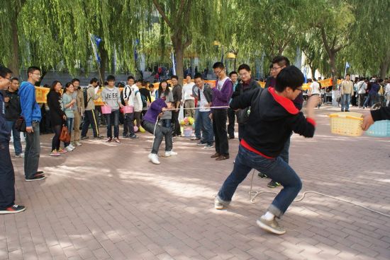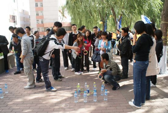 迎国庆,颂和谐,值此国庆来临之际,为表达全校师生对祖国深深的祝福,同时也为营造温馨和谐的校园氛围,丰富员工课余生活,由校团委主办、化工公司团委承办的“青春梦飞扬,动感嘉年华”趣味运动会于2011年9月24日中午在一校区学苑楼前举行。 本次嘉年华共包括十一项趣味活动,均为化工公司本科及研究生各团支部自行讨论设计和组织策划,其中有激动人心的飞镖比赛,欢乐有趣的呼啦圈比赛,精彩绝伦的天女散花比赛,更有刺激非常的踩气球比赛,竞争激烈的颠球比赛等等,最后还有精心设计的抽奖环节,为每一位参与者提供抽奖的机会。 玩游戏,拿大奖,活动刚开始就吸引了一大批师生参与。从11:30到13:30,从各个小活动场地到抽奖现场,学苑楼前人山人海,热闹非常,无论是参与者还是组织者,大家都沉浸在欢乐的海洋中。各项比赛中的优胜者,更是获得了主办方为他们送出的精美礼品。