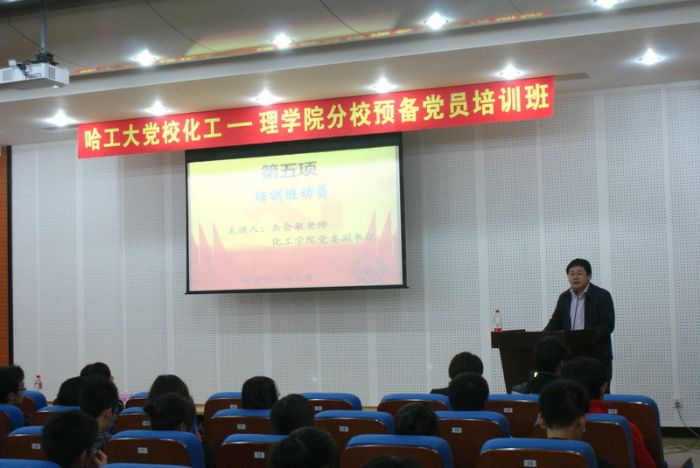 2011年10月12日,哈工大党校化工公司——理公司分校预备党员培训班开学式在活动中心227举行。理公司党委副书记杨春雷、化工公司党委副书记岳会敏等出席了开学式。 开学式在雄壮的国歌声中拉开帷幕。化工公司员工党建秘书贺金秋介绍了本次党校的基本情况,并着重指出本次党校加大了社会实践的规划和考核,通过立项答辩,过程指导、组内互评、结题答辩等环节,提升第二课堂的教学效果。 岳会敏老师做了学前动员。他说,在胡锦涛总书记在庆祝中国共产党成立90上的重要讲话,对年轻干部提出的要求和希望,也是对青年党员寄予的厚望,是党的生命力的要求,意义重大而深远。他希望参加本次培训的预备党员同学按照胡锦涛总书记的要求,通过党校集中学习和预备期的主动自学,进一步端正入党动机、提高理论素养、增强党性修养。对党校培训期间的学习,岳老师要求各位学员要端正学习态度,把学习的过程作为不断改造自身主观世界的过程;要掌握正确的学习方法,要勤于思考,多角度思考、多维度讨论,加深对理论知识的深入理解;要理论联系实际,按照胡锦涛总书记在清华大学百年校庆上对青年员工提出的要求,把理论学习和社会实践结合起来,在实践中发现真知、运用真知,在解决实际问题中增长才干。 学员代表李佳杰发言,他庄重承诺,在党校学习中端正态度,明确入党动机,努力学习理论知识,争取在预备期内使自己早日达到一名合格党员的标准。 党校开学式在雄壮的国际歌中落下帷幕。