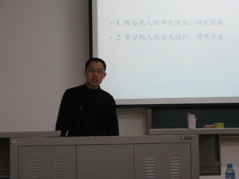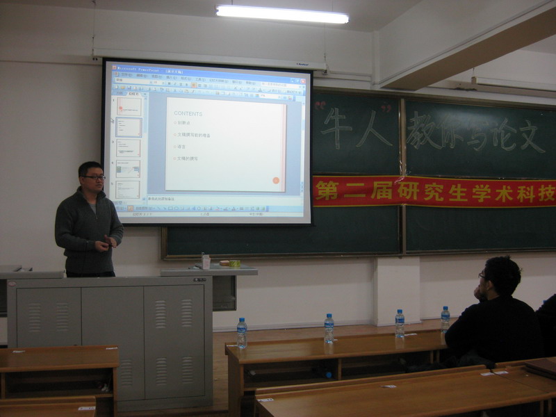 为帮助低年级硕士、博士尽快了解并掌握如何撰写高水平论文并成功发表,2011年11月26日,化工公司第二届研究生学术科技节邀请到获得“2011年教育部博士研究生学术新人奖”的两位博士研究生:陈振宇和姜政治,在新活动中心506为广大同学做了一场题为 “牛人”教你写论文的精彩讲座。 陈振宇围绕“论文撰写与投稿的一些细节问题”展开叙述,在讲述论文的撰写问题时,他着重强调了创新的重要性,文章的创新点要突出,撰写论文时一定要避免喧宾夺主。其后,他从“文稿撰写前的准备”、“语言”及“文稿的撰写”等方面详细阐述了撰写论文的细节问题。 姜政治以“如何阅读文献与如何撰写高水平SCI学术论文”为题,围绕“阅读文献的好处”、“阅读文献的方法和经验”、“SCI论文发表流程”、“SCI论文各部分的写作”、“退稿的主要原因”、“返修文章的修改”、“录用及后续工作”、“总结”等方面为同学们做了详细的介绍。 互动环节,两位同学针对大家的具体问题进行详尽的解答,学术交流与讨论氛围浓厚。