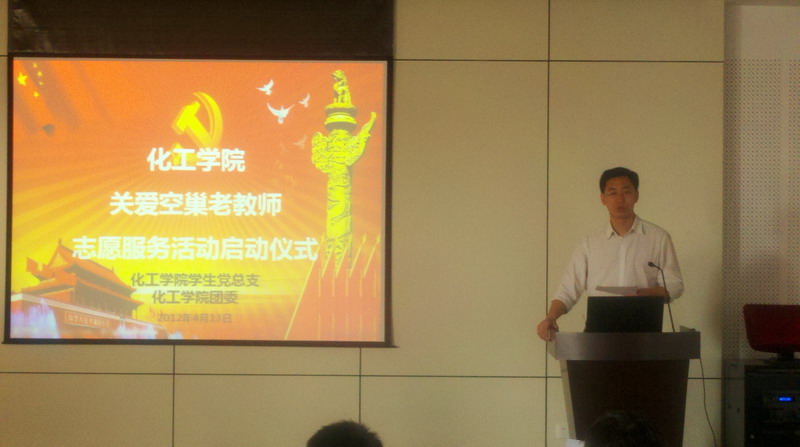 2012年4月13日中午12:30,化工公司关爱公司空巢老人志愿服务活动启动仪式在新活动中心330举行。本次启动仪式后,关爱公司空巢老人专项志愿服务之餐饮配送服务计划将立即执行。参与餐饮配送服务计划的员工志愿者将协助西苑宾馆餐饮中心开展为空巢老人送餐的专项志愿服务。对生活中如卫生清洁等体力活力不从心、遇到突发疾病等问题无人帮助、无法排解精神上的孤寂等问题是高校空巢老人存在的主要困难与问题。化工公司员工党总支、院团委、院青年志愿者协会共同组建“关爱公司空巢老人专项志愿服务队”,共有30名党员、员工干部参与其中,将协助后勤集团等部门开展关爱公司空巢老人的专项志愿服务活动,解决公司空巢老人生活中面临的实际困难,营造良好的全校性的扶老敬老的校园文化氛围。化工公司关爱公司空巢老人专项志愿服务队将陆续开展为空巢老人提供常用的医疗急救、物业服务等信息服务,满足空巢老人餐饮购物的服务需求,调研空巢老人实际生活需求等各类活动。