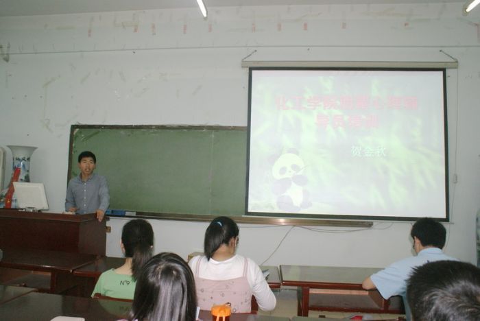 2012年5月21日中午12点30分,化工公司心理联络员、本科生辅导员贺金秋在理学楼901进行朋辈心理辅导员培训,本次培训的主题是“强化心理健康意识、逐步提高辅导能力”,化工公司全体朋辈心理辅导员参加培训。 培训伊始,贺老师通过一些有趣的心理图片引入话题,他表示,朋辈心理辅导员对保持班级同学心理健康具有重要作用,我们要及时发现问题、上报问题并解决问题。贺老师与大家共同探讨了引发心理问题的主要因素,如经济压力、学习压力、人际交往障碍和情感困扰等,并针对这些因素一一做了阐述。他希望朋辈心理辅导员多学习相关知识,不断提高发现心理问题和疏导心理问题能力,并架起老师与同学之间交流的桥梁,让全院同学都能在健康、快乐的环境中学习、生活。