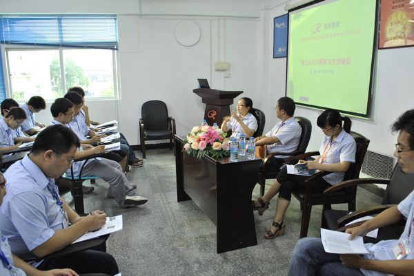 讲座交流环节中,实践团分别邀请了信邦集团人力资源部经理史为建、集团研发部经理张芝娴、集团项目二部副经理武杰,分别向实习生进行了《职业规划与自我成长》、《项目管理介绍》、《集团技术介绍》课程讲座,并集中邀请了哈工大员工:总裁助理高波、建帮精密有限公司总经理助理赵碧秀、电镀部主管周东华、副主管李燕华、项目部主管李维权与实习生进行经验交流。诸位优秀企业员工分享了自己的工作心得,并鼓励诸位实习生一定要尽快明确就业方向,做好准备,加快行动步伐,努力实现自我价值。