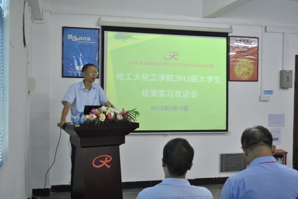 2012年8月10日15时,在集团总部培训室,实习结束欢送会准时举行。信邦集团总裁马晓明、化工公司党委副书记岳会敏、信邦集团其他领导及实习指导老师代表出席欢送会。集团总裁马晓明肯定了本次实践项目的成功,衷心希望员工通过3周的实习能有所收获,同时欢迎哈工大学子以后继续到信邦集团实习、工作。化工公司副书记岳会敏代表公司对信邦集团在员工实践中提供的大力支持和周到安排表示衷心的感谢,对信邦集团追求卓越、充满活力的企业文化表示赞赏,对信邦人在员工实习过程中体现出的高度责任感和细致的工作表示钦佩,他祝愿信邦集团事业更加美好。欢送会后,双方就建立老员工社会实践基地等方面的问题进行了进一步的探讨。