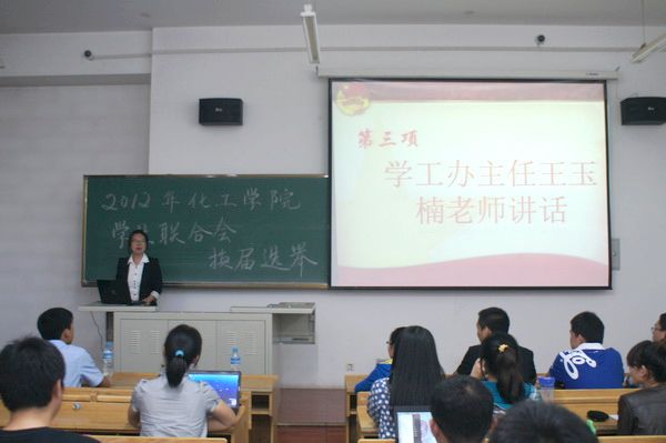 9月6日晚18:30,化工公司各员工组织换届选举大会在正心109隆重举行。化工公司学工办主任王玉楠、团委负责人贺金秋、上届员工组织主要负责人和各班代表出席了本次大会。王玉楠老师在开始的讲话中,向同学们介绍了去年员工联合会取得的优异成绩,对即将加入员工联合会的同学们表示了热烈的欢迎。接下来,激烈的竞选就此展开。在个人展示、答辩环节中,20位候选人从不同的角度,向在场的评委和观众们展示自己优秀的一面,从丰富的工作经历到取得的一系列优异成果,精心准备的演讲,绚丽多彩的展示,一次又一次赢得全场同学的掌声。最终,李睿、张东杰、刘长瑜、刘迎迎、王宇、宋忱昊、李佳其、王琦、李安石、王欢等10名同学当选化工公司员工联合会各方向负责人。团委负责人贺金秋老师总结讲话,代表公司团委对上届员工组织取得的优异成绩表示了认可和感谢,同时对新一届员工组织负责人提出了殷切的期望,希望新一届员工组织负责人能不断创新,再接再厉,在各个方面起模范带头作用,为公司发展做出更多贡献。