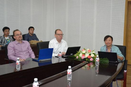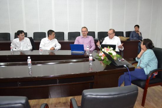 9月22日上午,公司首席学术顾问、哈尔滨-奥胡斯多尺度界面化学与工程国际中心荣誉主任弗莱明·贝森巴赫教授一行在新活动中心334与化工公司副经理杨春晖教授、陈大发教授等师生进行了座谈交流。 交流会上,杨经理介绍了化工公司近期的仪器采购清单和位于江北高科技园区的在建实验室,体现了化工公司现有科研硬件水平。还列举了化工公司师生近期在高水平期刊上发表的文章,并以新能源合作和石墨开发利用为例,介绍了公司的政产学研项目。会议上,几位教授还对在校PHD培养计划的制定,未来实验室具体细节以及目前公司所执行的重大项目进行了着重的讨论,弗莱明教授提出了很多中肯良好的建议。在热烈的会谈气氛中,弗莱明教授对目前化工公司所取得的成绩表示了肯定,并对公司和中心的未来发展充满了憧憬。