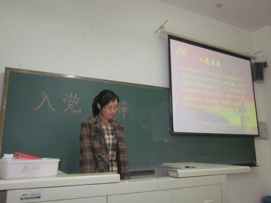 为提高发展党员质量,使党员发展工作更加程序化、规范化和制度化,化工公司09本科生第一党支部于10月27日在正心203教室进行了入党公开答辩,支部全体党员、入党积极代表、群众代表列席会议,公司员工党建秘书贺金秋老师出席了会议。 答辩由个人展示、培养人意见、现场提问、个人承诺四个环节组成。本次入党答辩旨在考察重点发展对象的理论知识、入党动机、个人表现及入党承诺等。答辩会上,发展对象言辞恳切,通过PPT向大家展示了自己对党的认识和学习、生活、工作的现实表现。应对现场老师和同学的提问,发展对象深刻思考,发现自身不足,同时结合考研、找工作、学习困难员工帮扶等工作进行了公开承诺。通过答辩支部看到了发展对象的进步,同时也使发展对象明确了自身存在的不足,以便更好的发挥党员先进性。