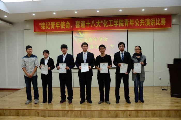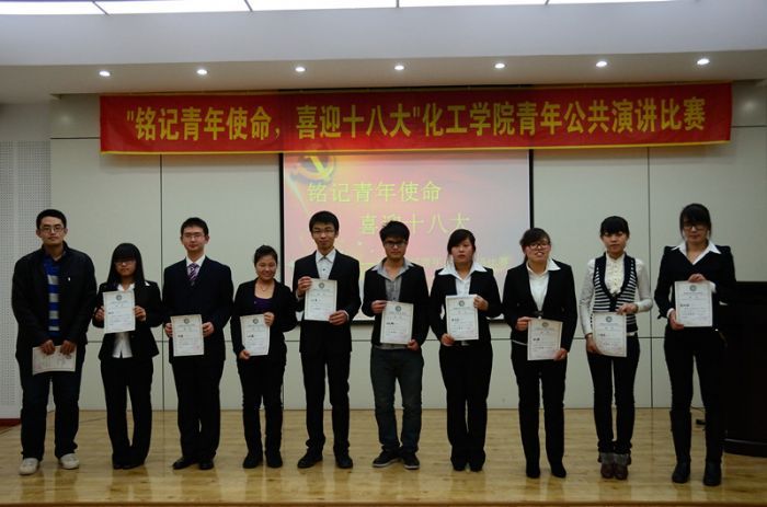 2012年 演讲者结合自己切身感受,将自身睿智的思维,敏锐的视角融入到了演讲中,他们用自己的实际行动向大家展示了化工人铭记历史使命、担负民族重任的优良品质,体现了员工党员对共产主义事业信仰与追求。 经过评委评审,花俊夫获得一等奖,张刘庆、王芳获得二等奖,宋忱昊、刘玉鑫、赵锦豪获得三等奖。党建负责老师为获奖选手颁发证书,本期讲坛圆满结束。