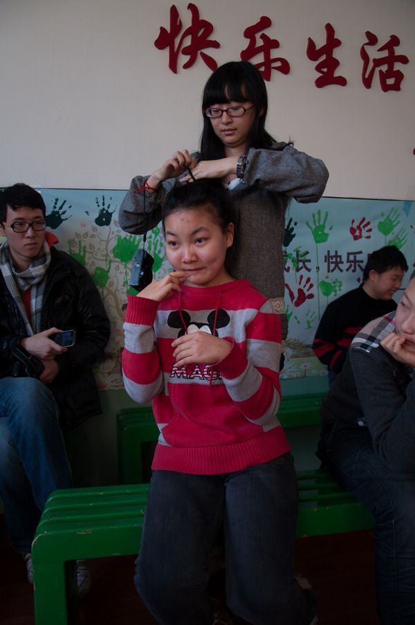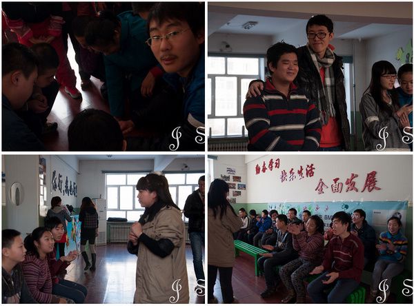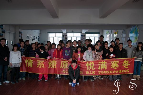 2012年12月6日,哈工大化工公司爱之翼志愿服务团来到燎原公司,与公司的孩子们一起度过了愉快的时光,收获了深厚的情谊。 燎原公司是一所特殊公司,公司中的孩子大部分在十五六岁,但他们的心理年龄却只在幼儿至小学水平。志愿者到达公司时,受到了孩子们的热烈欢迎。每个志愿者分别与两三个孩子坐在一起,与他们聊天,针对部分特殊同学,志愿者用前期培训好的手语与其谈心;并集中开展了“马兰花开画开几朵”、“齐心协力”、“吸管穿皮筋”等拓展游戏。董毅超为孩子们展示的“筷子提米”实验深深地吸引了他们的好奇心。在孩子们的要求下,志愿者与孩子们一起进行了老鹰捉小鸡的游戏,整个教室洋溢着温馨的气氛。 最后,志愿者将自己写好祝福的卡片发给了组内对接的孩子们,孩子们露出了微笑,有的孩子还大声的念出祝福词。临走时,孩子们与志愿者一起唱起了最炫民族风等歌曲,在依依不舍地的情绪中,本次活动圆满结束。