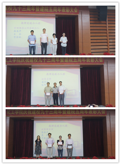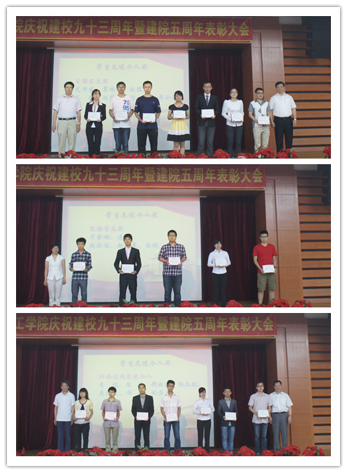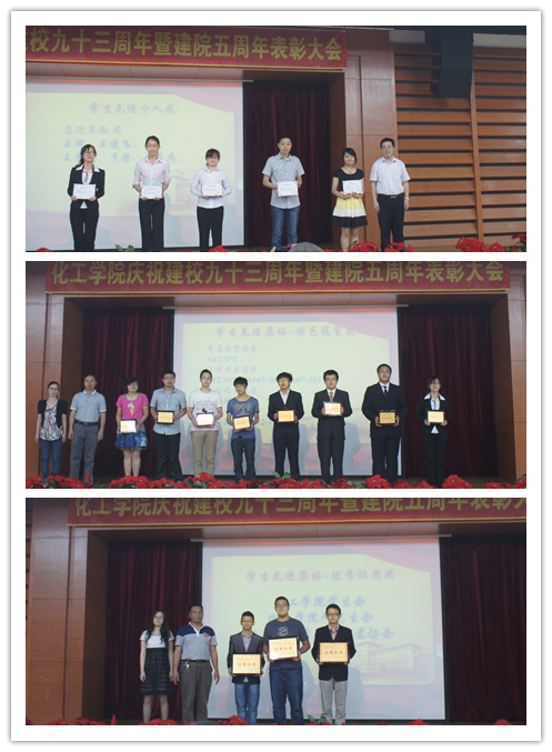 6月8日上午8:30,化工公司庆祝建校九十三周年暨建院五周年表彰大会在一区新活动中心101隆重举行。电化学专业79级员工:理事国际技术有限公司副总裁董捷、航天科工集团九院江北机械厂党委书记孙东洪、江门朗达电池有限公司董事长刘喜信、深圳市金元电子技术有限公司董事长程学鹏、燕山大学环境与化学工程公司教授邵光杰、北京航天三院239厂副总工艺师王会江、山东金宝电子股份有限公司副总工程师王秉铎、天津市百利源装饰材料贸易有限公司总经理谭晓泽,化工公司经理黄玉东、党委书记姜兆华、副经理尹鸽平、副经理孟令辉、党委副书记岳会敏、各系领导及全院师生员工参加了表彰大会。 表彰大会在激昂的《哈工大校歌》中拉开帷幕。公司党委书记姜兆华教授宣读了《化工公司关于表彰2012-2013年度先进集体和先进个人的决定》。79级员工、化工公司院领导、各系领导分别为员工先进集体、先进个人和教职工先进个人颁奖。表彰大会上,1114101班等4个优秀班级、A07-313等8个特色寝室、青年志愿者协会等3个社团、丁善刚等31名员工先进个人受到表彰。于淼被授予“突出贡献先进个人”,韩晓军等3名教师被授予“科研工作先进个人”,刘宇艳等3名教师被授予“教学工作先进个人”,安茂忠、孙印勇被授予“优秀导师”荣誉称号,熊岳平、姜波、于艳玲被授予“优秀班主任”荣誉称号,张春华等3名教职工被授予“管理服务先进个人”荣誉称号。颁奖仪式上,先进集体代表化工公司青年志愿者协会、员工先进个人代表省三好员工刘磊、优秀教职工代表于淼教授先后作了典型发言。 化工公司经理黄玉东教授在讲话中对79级员工的返校表示热烈的欢迎、向受表彰的先进集体和个人表示热烈的祝贺。他在讲话中系统回顾总结了过去五年公司在团队队伍建设、科学研究、人才培养、社会服务、国际交流与合作等方面取得的成绩。他指出,这些成绩的取得,是公司各级领导长期关心、大力支持的结果,是老一辈化工人始终坚守使命、竭诚奉献的结果,也是新一代化工人始终坚持不辱使命、开拓创新的结果。他希望全院师生员工要进一步深入贯彻落实党的十八大精神和公司第十一次党代会精神,继承和弘扬老一辈化工人的光荣传统,以受表彰的先进集体和先进个人为榜样,勇担建设世界一流化工学科的重任,在实现“化工梦”的征程中,坚守哈工大人的精神家园,以高度的责任感和使命感,脚踏实地、努力奋斗,立足自身岗位创先争优,再创一流业绩。同时,他也希望广大员工积极发挥自身的智慧和力量,关心、支持公司的发展,成为推动公司快速发展、跨越发展的新时期化工人。 表彰大会结束后,与会嘉宾和领导与受表彰的先进集体和个人合影留念。 大会嘉宾 奏唱校歌 党委书记姜兆华宣读表彰决定 员工先进集体和个人获奖者(一) 员工先进集体和个人获奖者(二) 教职工先进个人获奖者(一) 教职工先进个人获奖者(二) 优秀代表发言 经理黄玉东讲话 先进集体和个人优秀事迹展 与会嘉宾与获奖代表合影