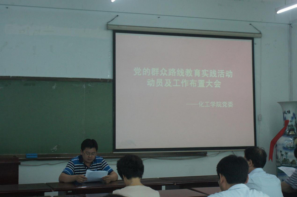 2013年7月15日下午,化工公司党委召开了党的群众路线教育实践活动动员及工作布置会。公司党委书记姜兆华、经理黄玉东、副经理孟令辉、党委副书记岳会敏及各党支部书记等参加了会议。 公司党委书记姜兆华传达了公司党委书记王树权同志在党的群众路线教育实践活动动员大会上的讲话精神,并要求全公司党员干部要加强学习,深刻领会各级领导的讲话精神,坚决把思想和行动统一到习近平总书记的讲话精神上来,统一到公司要求部署上来。他指出,在学习教育、听取意见环节,党员干部认真学习中央和公司关于教育实践活动的一系列重要讲话和文件精神,自学辅导材料,深入群众调查研究;在查摆问题、开展批评环节,要重点围绕为民务实清廉要求,对存在的突出问题进行认真梳理,进行党性分析和自我剖析,开展批评和自我批评;在整改落实、建章立制环节,重点针对作风方面存在的问题,提出解决对策,制定和落实整改方案,对一些群众反映的突出问题进行集中治理;广大党员干部要把教育实践活动与推动公司科学发展、党员干部履职尽责、解决师生员工反映强烈的突出问题紧密结合起来;通过深入开展党的群众路线教育实践活动,凝心聚力,使公司整体工作再上一个新台阶。 党委副书记岳会敏介绍了化工公司党的群众路线教育实践活动方案。 院教育实践活动联络员孟慧传达了公司对基层党委(总支)具体的要求及对教育实践活动的宣传工作注意事项。