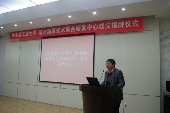 2013年12月25日,欢迎来公海欢迎来到船701-碧水源膜技术联合研发中心揭牌仪式在新活动中心330举行。北京碧水源膜科技有限公司总经理陈亦力、副总经理赵福生、公司工业技术研究院副经理路忠锋、化工公司经理黄玉东、党委书记姜兆华、副经理尹鸽平、副经理杨春晖、副经理孟令辉、党委副书记岳会敏和高分子科学与工程系副主任张春华、黎俊等出席了揭牌仪式。 化工公司经理黄玉东对陈亦力总经理一行的到来表示的热烈欢迎,他表示,化工公司对于联合研发中心的成立高度重视,希望以中心的成立为契机,不断拓宽校企双方协同创新的研究领域,进一步深化合作。同时,黄玉东经理介绍了化工公司的发展建设情况。 北京碧水源膜科技有限公司总经理陈亦力介绍了企业的发展历程与核心理念。他表示,联合研发中心的成立要实现校企双方共赢,形成全面的合作,并希望依托哈工大化工公司的技术力量为支撑,实现公司的技术创新,为中国和社会创造更大的价值。 张春华教授对联合研发中心的人员构成、技术方向、业务领域、发展目标等方面进行了介绍,并表达了做好联合研发中心工作的决心和信心。 工业技术研究院副经理路忠锋代表公司对联合研发中心的成立表示祝贺,他希望双方能积极发挥自身的优势,进一步深化合作的领域和深度,取得高水平的成果。路忠锋副经理还与陈亦力总经理共同为联合研发中心揭牌。 化工公司党委书记姜兆华教授和陈亦力总经理代表双方交换礼品。